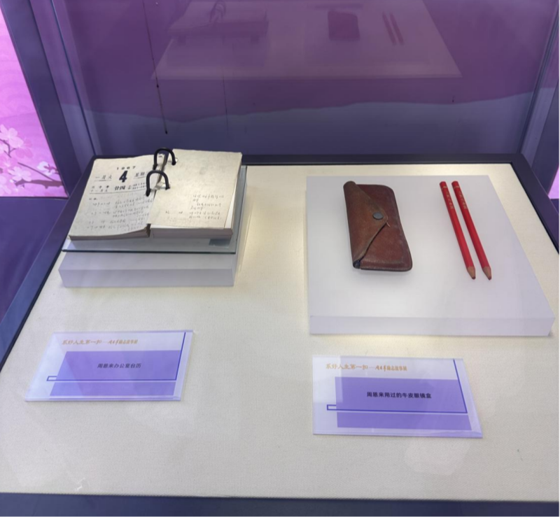 同时展览还陈设了大量的文物,周恩来小时候使用过的文具罐以及生前穿过的中山装、使用过的牛皮眼镜盒、凉皮鞋等日常物品。这些看似寻常的物件,却无声地诉说着周恩来艰苦朴素、廉洁奉公的崇高品格。通过文物背后的故事加深了青少年对周总理形象的认识,更加直观地感受到他的人格魅力。