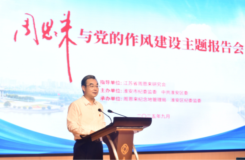 9月26日,“周恩来与党的作风建设”主题报告会举行,传承和弘扬周恩来同志的优良作风,巩固拓展深入贯彻中央八项规定精神学习教育成果,推动作风建设常态化长效化。国家档案局原局长、中央档案馆原馆长杨冬权;省关工委常务副主任,省政协原副主席、南京大学党委原书记胡金波;省纪委副书记、省监委副主任黄楚中;省纪委监委宣传部部长李小中;周恩来侄儿、中国知青网理事长周秉和;中国纪检监察学院北戴河校区办公室副主任赵安等出席会议。省周恩来研究会会长,省委党史工办原主任、省政协提案委原副主任张亚青作活动点评。市委书记史志军致辞。市委常委、市纪委书记、市监委代主任吴茂春作主旨介绍。