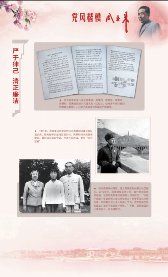 会前,部分参会人员集中观摩了“党风楷模——周恩来”主题展。该展览分为坚守信仰、对党忠诚,维护大局、勇于担当,热爱人民、大爱无疆,严于律己、清正廉洁四个部分,多角度、深层次、立体化地展示周恩来一生不折不扣践行党的优良作风的楷模风范。