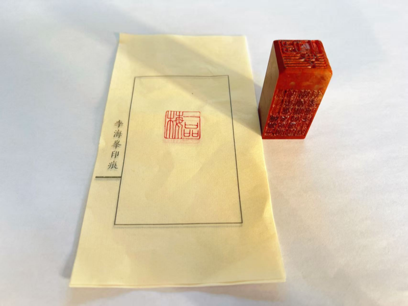 近期同时入藏的“一品梅”印章,由淮安市合肥路小学老师李海峰创作。他表示,梅花傲雪凌霜的品格,恰与周恩来总理的崇高风范相契合。他耗费多日精心雕琢这方印章,每一刀都饱含着家乡人民对周恩来总理的思念。