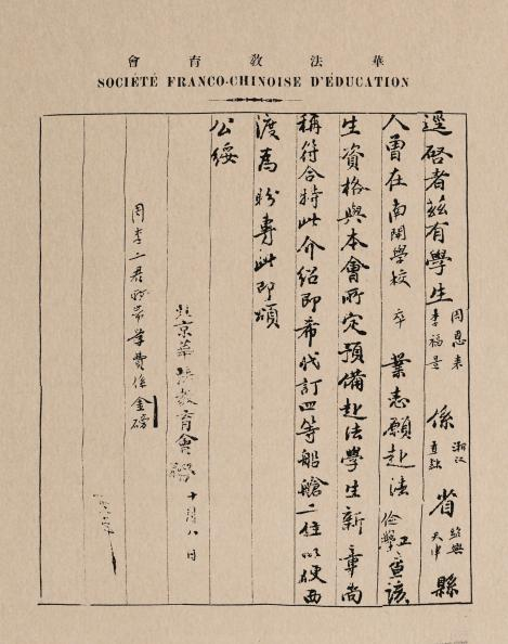 周恩来赴法勤工俭学的介绍信