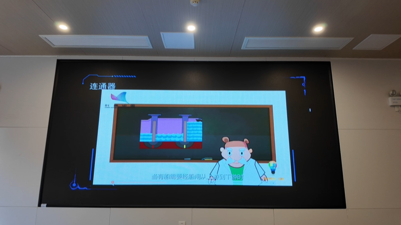在导入环节,科普老师通过展示板闸遗址公园大运河闸的实景图片,播放4K动漫短片和三维动画,详细讲述古代京杭大运船闸的工作原理,让同学们直观地感受到了古代工匠的治水智慧。