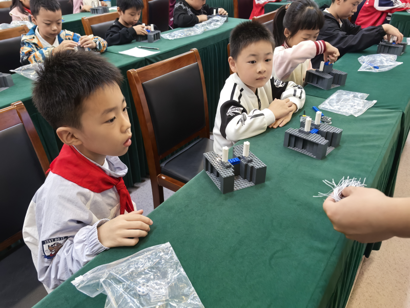 随后的科技水闸模型搭建环节将活动推向了高潮。同学们在科普老师的指导下,亲手搭建了包含闸室框架、传动系统和控制模块的水闸模型,并进行了功能展示。老师从结构稳定性、传动流畅度和科技元素运用等方面进行了点评,鼓励同学们互相学习、优化方案。