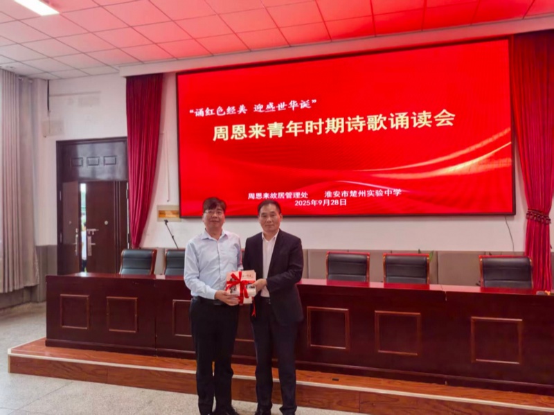 诵读环节结束后,周恩来故居管理处向楚州实验中学赠送《为中华之崛起而读书》《人生第一堂课——周恩来的家教故事》等励志读物、周恩来励志格言墨迹作品。这些书籍与格言,作为周恩来崇高品质的有形载体,为青少年思想道德建设提供了丰厚滋养。