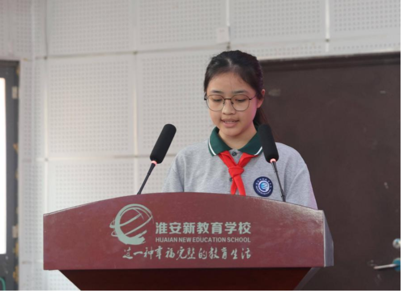淮安市新教育学校学生代表苏芸在活动中发言,表达了对周恩来总理的深切缅怀与崇高敬意。她表示将不辜负长辈与社会期许,以周总理精神为指引,在学习中刻苦钻研、生活中严于律己,坚决“系好人生第一扣”,努力成长为有理想、敢担当、能奋斗的新时代好少年。